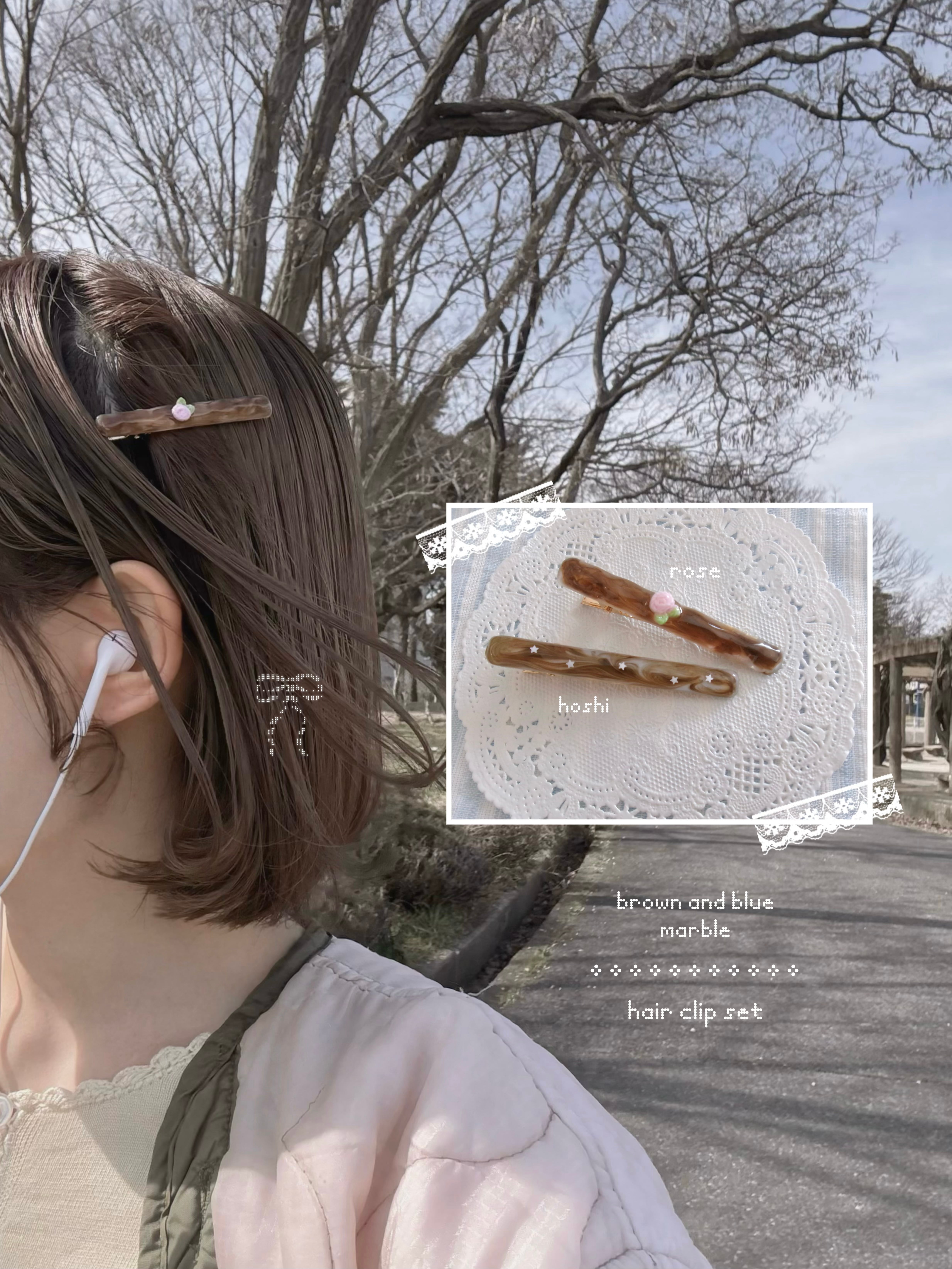 blue brown marble hair clip set